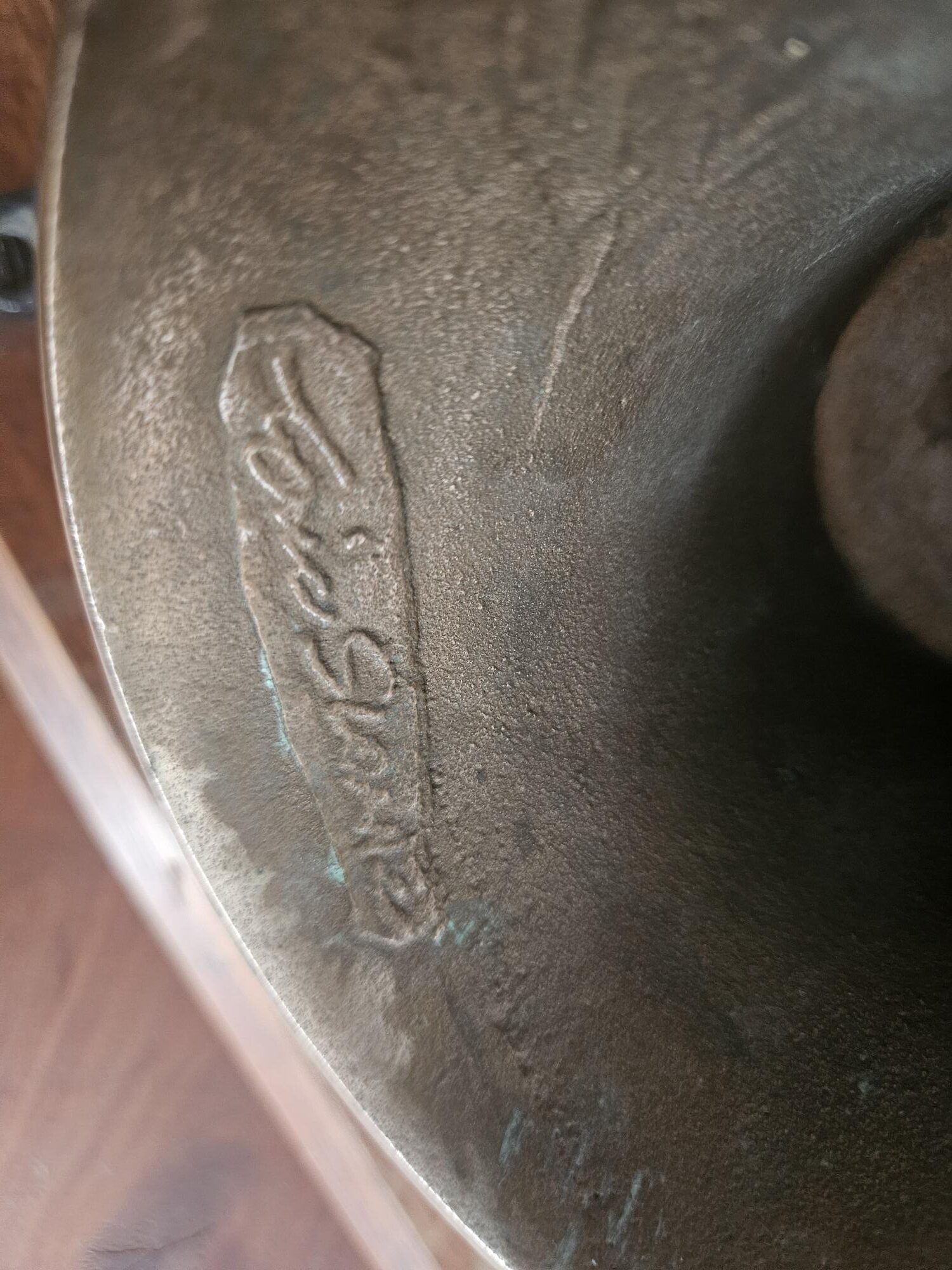 The bell and cradle were reproduced in miniature to create this ‘desk model’, as well as a handbell and a doorbell. Only 178 bells were cast according to the Warren County Historical Society, with an unknown number of those being allocated to desk, hand, or door configurations. This bell is also signed by Sloane inside the mouth, which is rarer still. Only 100 of the 200 total that were supposed to be made (again, only 178 were actually made) were signed, and how many of those made it into the desk model is unknown.