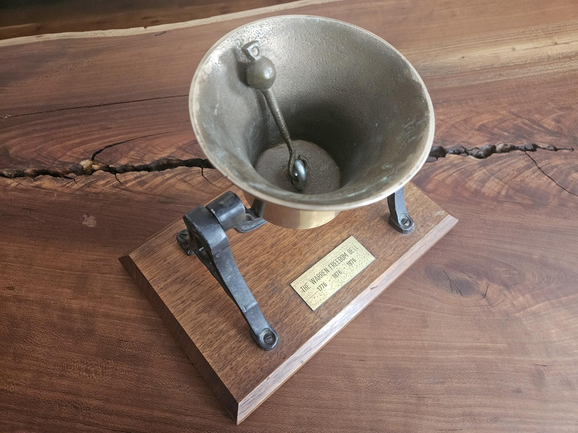 This is the Warren Freedom Bell, in ‘desk bell’ form, created for the 1976 United States Bicentennial and the 100th anniversary (1876) of the original casting of the bell, which sat atop the old Warren (CT) church.